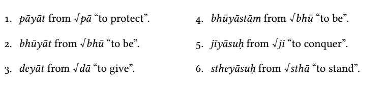 >>>> take to be examples of “precatives” or “benedictives” (*āśīrliṅ*) in