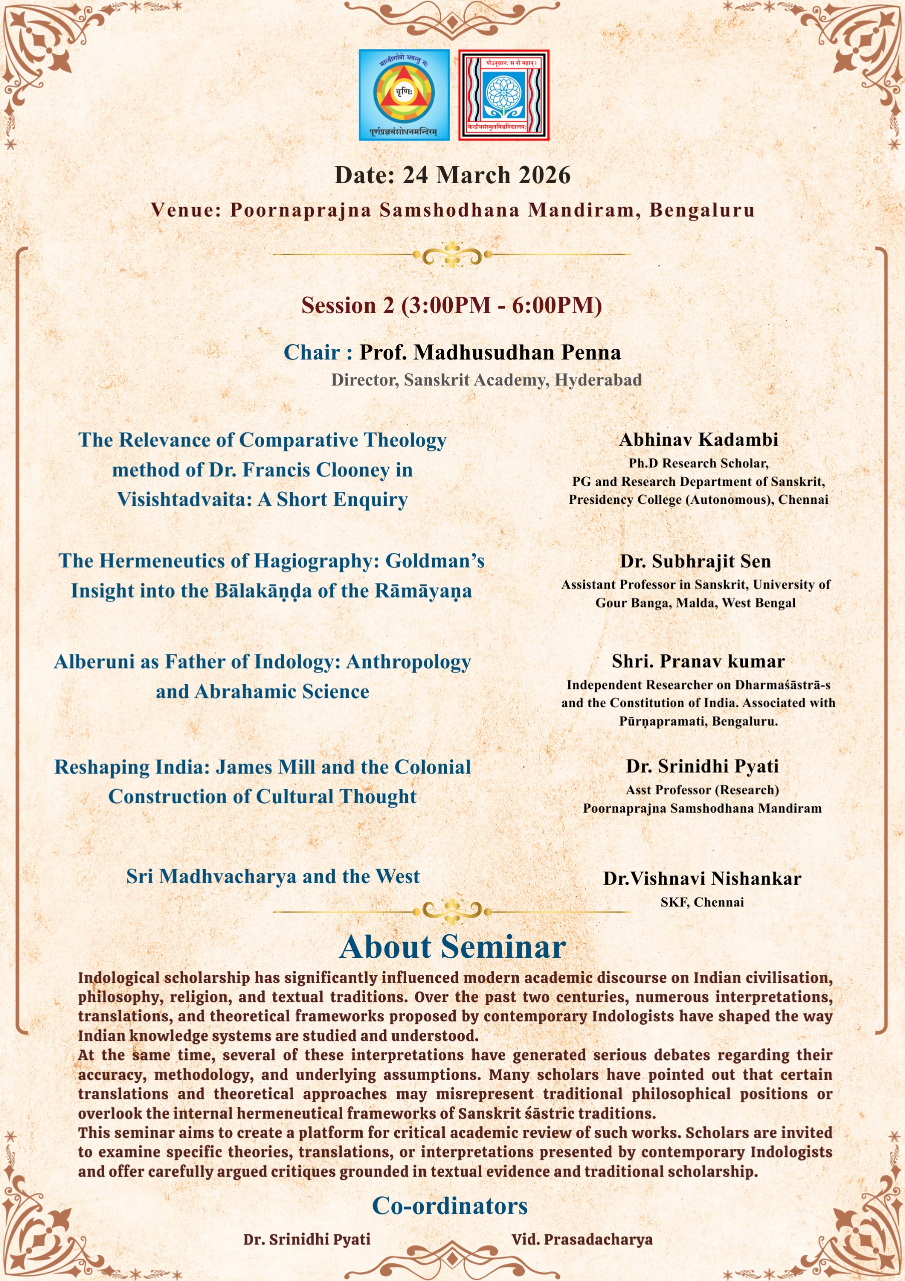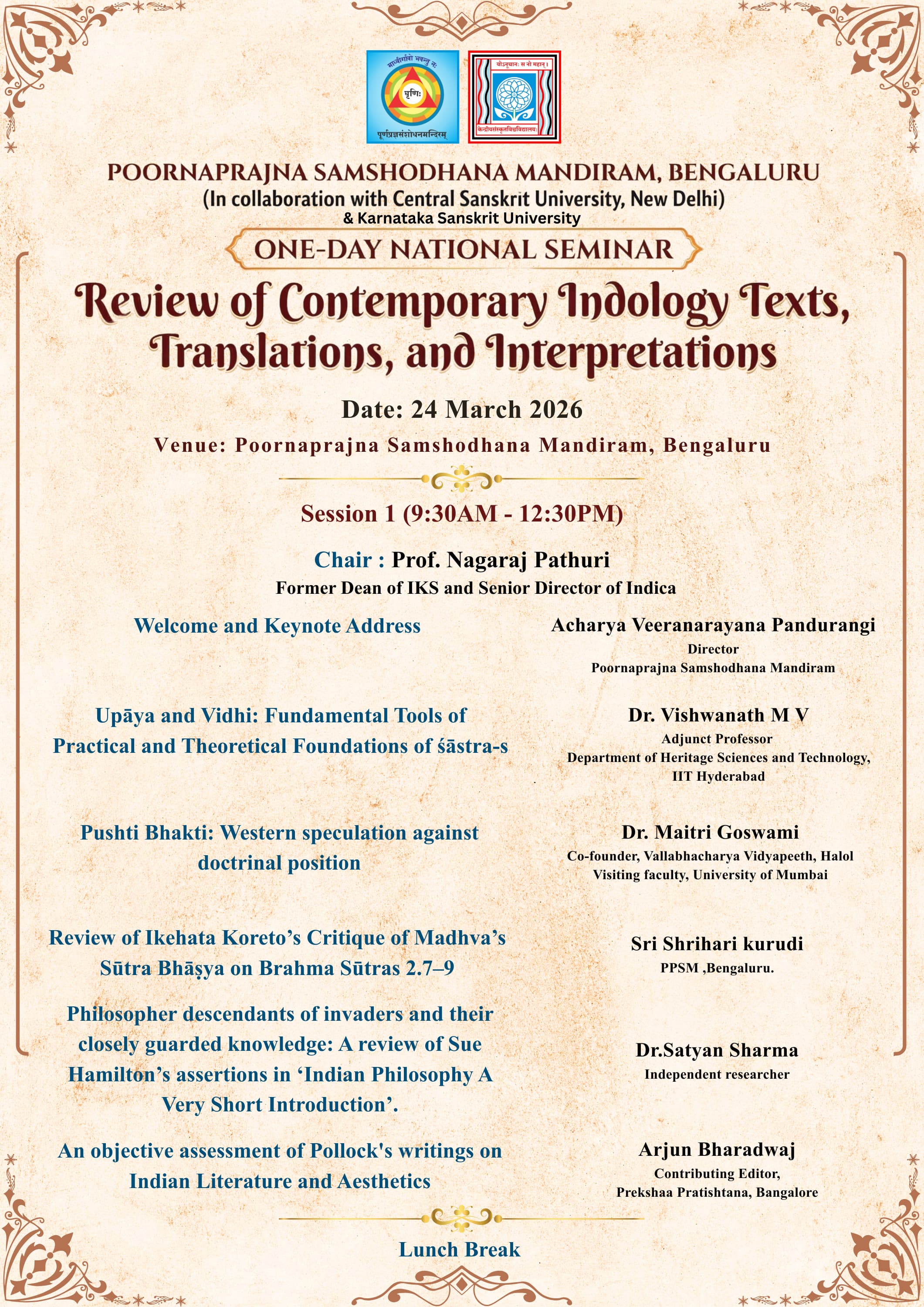 [INDOLOGY] Seminar on Review of contemporary Indology texts translations and Interpretations 24.3.2026 Poornaprajna Samshodhana Mandiram Bengaluru